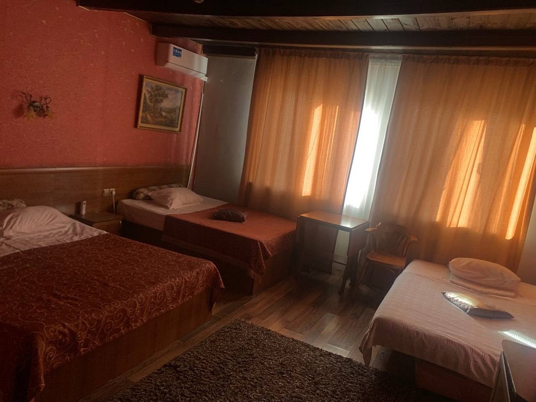 Этот просторный номер выполнен в теплых тонах и создан для комфортного отдыха. Интерьер дополняется мягким освещением и элегантными шторами, которые создают уютную атмосферу. Номер идеально подходит для семейного размещения благодаря трем кроватям, что обеспечивает дополнительное удобство.Услуги и удобства