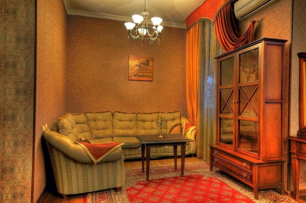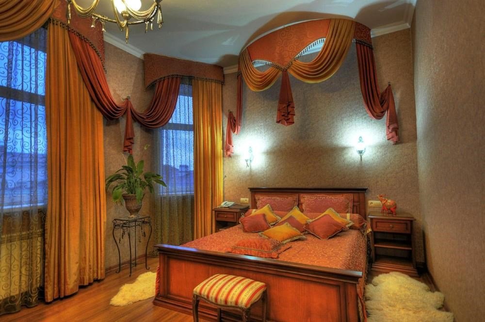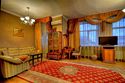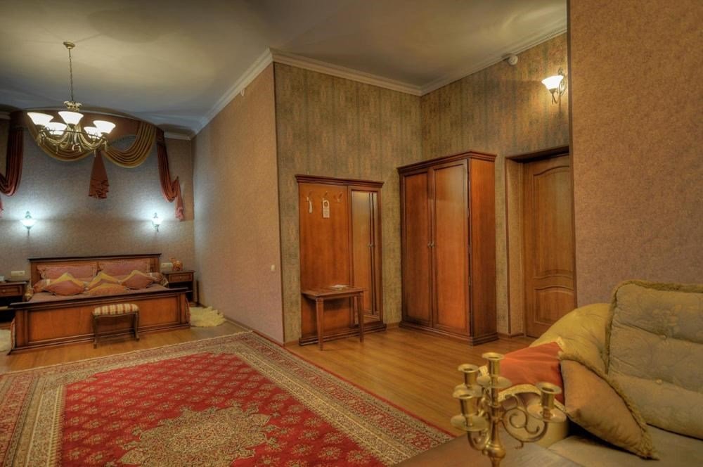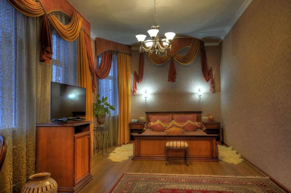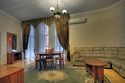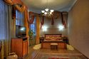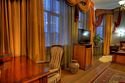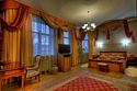 Просторный номер в классическом стиле, оформленный в теплых тонах. В интерьере преобладают изысканные текстуры и элегантные элементы декора. Уютная атмосфера создается благодаря мягкому свету и гармоничным цветовыми решениями, а высокие окна с пышными шторами добавляют комнате особый шарм и освещение.Услуги и удобства