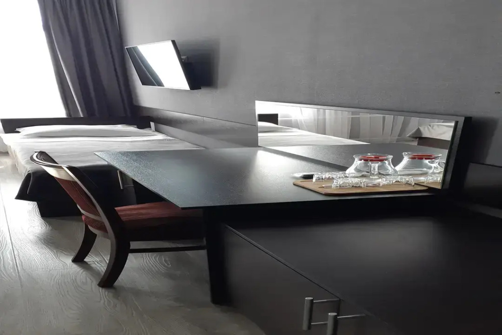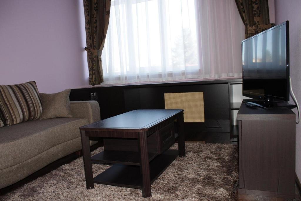 Номер уютно обставлен и оснащён необходимым, чтобы отдохнуть после долгого и насыщенного дня. Имеются телевизор и халат. Оснащение зависит от выбранной категории номера.