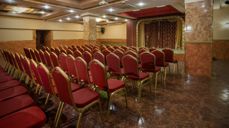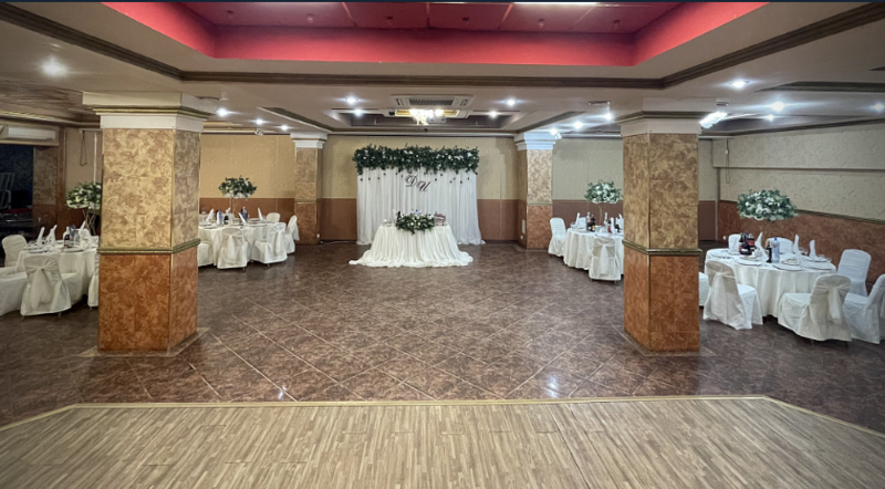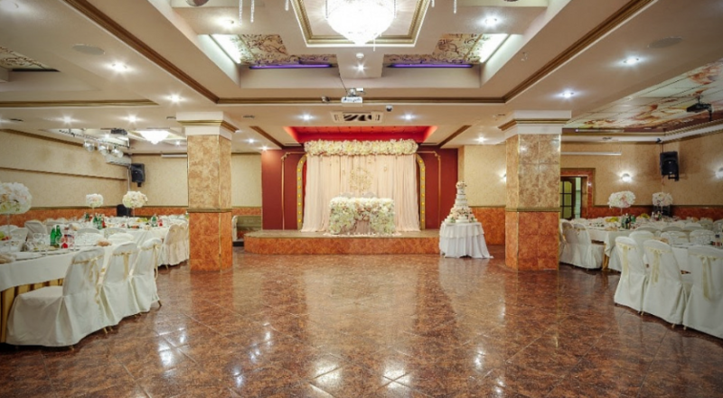 Просторный зал вместительностью до 330 человек оформлен в классическом стеле. В зале имеется все необходимое оборудование для проведения торжеств любого характера.
