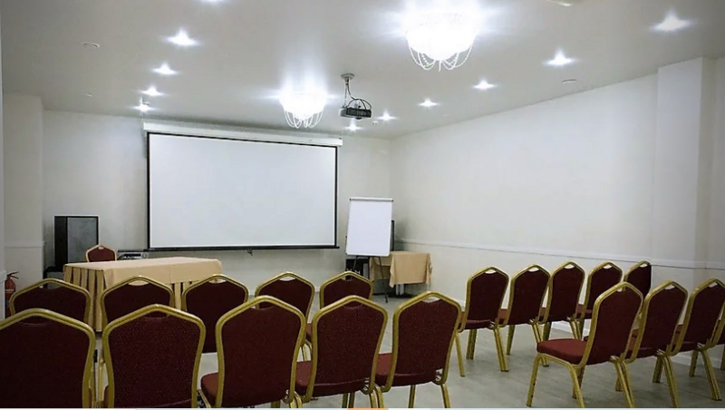 Светлый, комфортабельный конференц-зал идеально подходит для вашего мероприятия, оснащенный абсолютно всем необходимым для современной конференции: стационарный мультимедиа-проектор + экран, бесплатный Wi-Fi.Максимальная вместимость - 100 человек.Площадь зала: 110 квадратных метров.