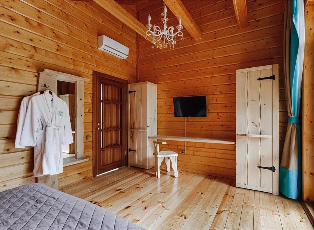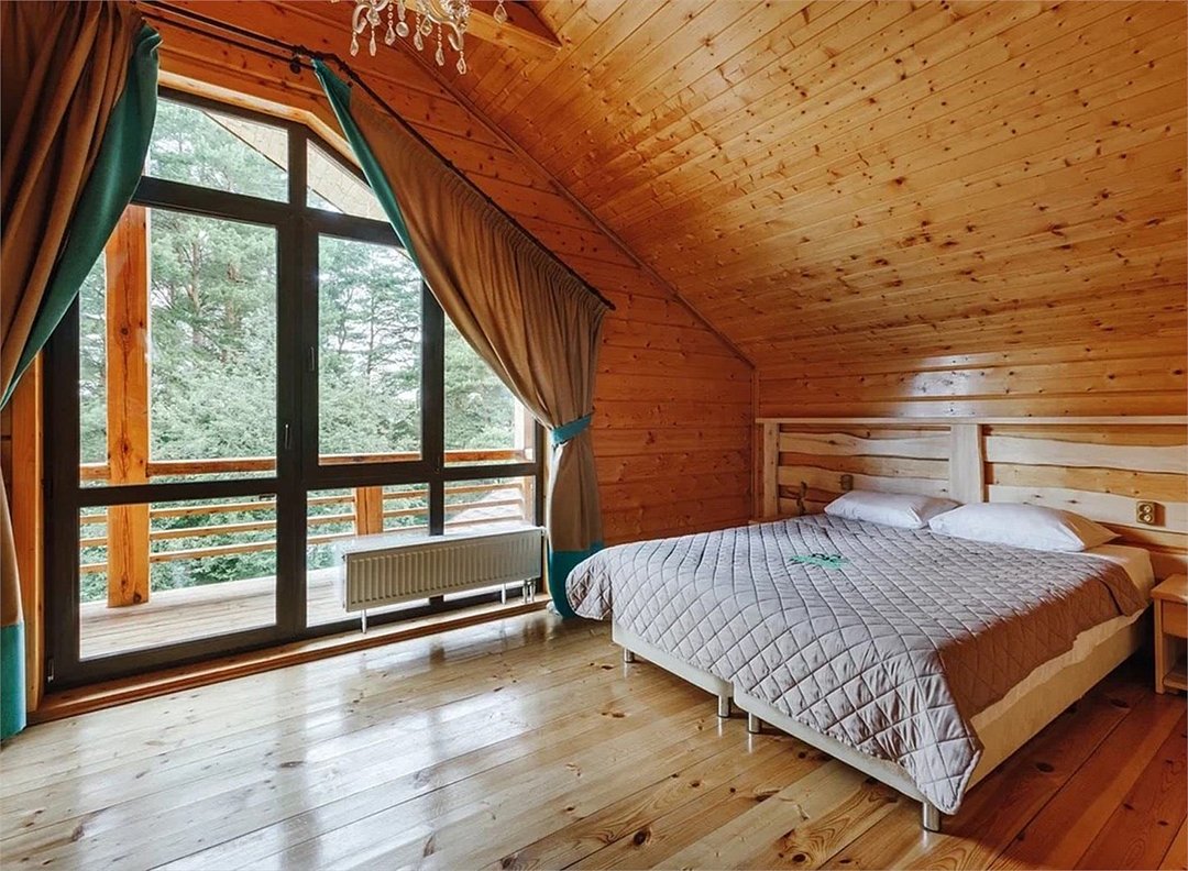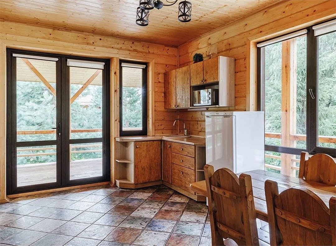 Wi-Fi, холодильник, кондиционер, фен, плита для приготовления пищи, микроволновая печь, теплый пол, банные полотенца, балкон, терраса, двуспальная кровать, две односпальные кровати, диван, обеденный стол, зеркало, набор посуды, чайник, гостиная зона, отдельный вход в номер, душ, три комнаты, плиточное покрытие, раздельный санузел, кухонная утварь, туалетные средства, мангал, цифровое тв, телевизор с плоским экраном, кухонный уголок, вид на лес, можно с питомцамиВ коттедже