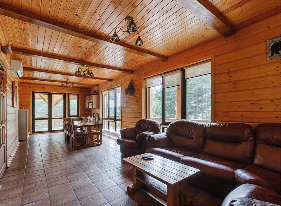 Wi-Fi, холодильник, фен, плита для приготовления пищи, микроволновая печь, биде, теплый пол, банные полотенца, балкон с красивым видом, терраса, диван, стулья, журнальный столик, обеденный стол, зеркало, обслуживание номеров, чайник, раковина, гостиная зона, душ, три комнаты, плиточное покрытие, вид на реку, три двуспальные кровати, раздельный санузел, столовые приборы, шесть односпальных кроватей, туалетные средства, мангал, принадлежности для барбекю, цифровое тв, мини-кухня, вид на озеро, теплые полы, морозильная камера, четыре телевизора, можно с питомцамиВ коттедже