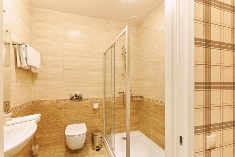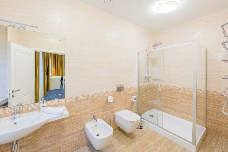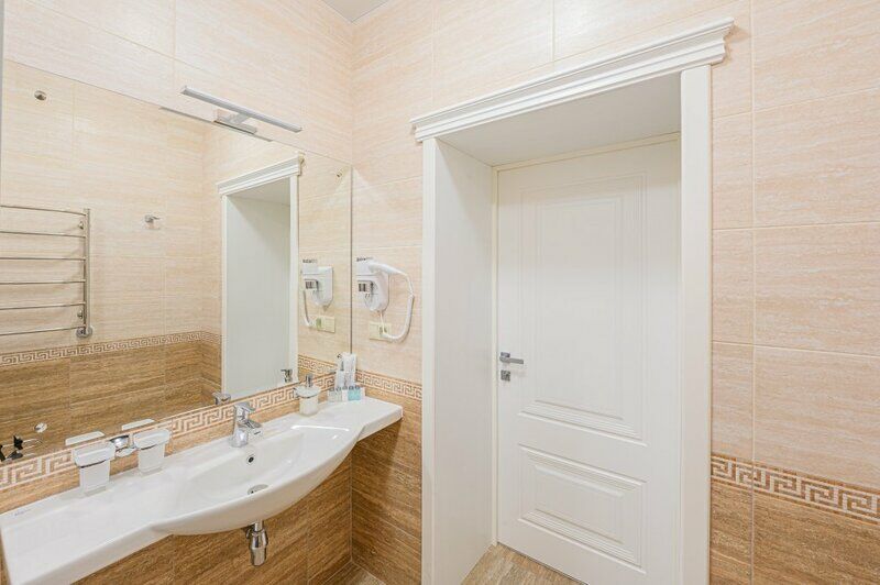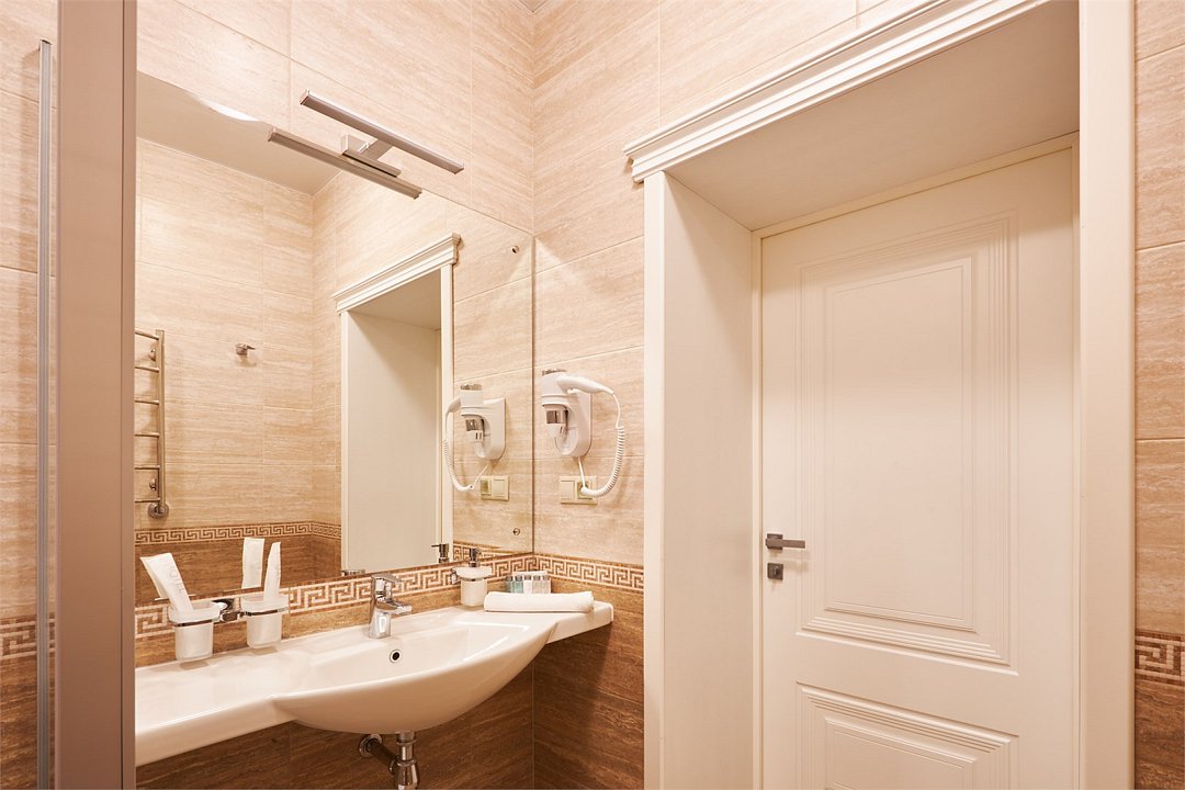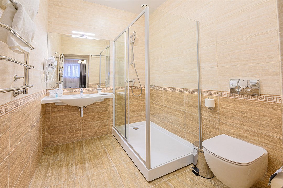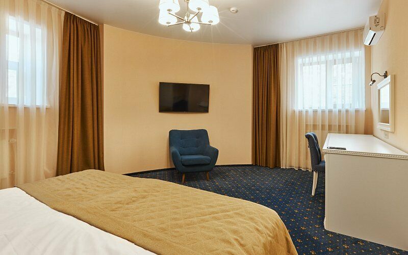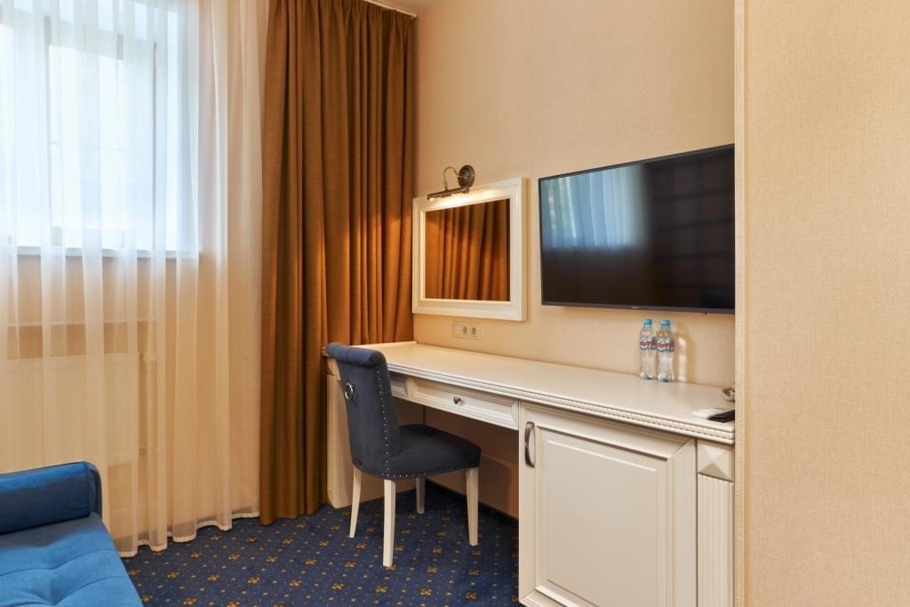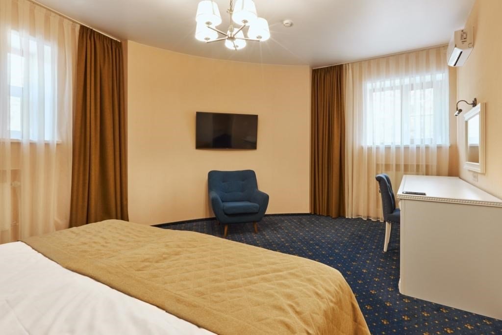 интерактивное телевидение, Wi-Fi, IP-телефон, кондиционер, светильник, настольные лампы, фен, вентилятор, система безопасности, электронные замки, утюг, ванная комната, душевая кабина, банные принадлежности, банные полотенца, тапочки, гигиенические средства, две односпальные или большая двуспальная кровать, гипоаллергенное белье, гладильная доска, ортопедический матрас, тумбы, стулья, шкаф для одежды, вешалки, письменный стол, багажная тумба, зеркало, эксклюзивная мебель, звуконепроницаемые стены и окна, обслуживание номеров, сейф, унитаз, раковина, косметическое зеркало, питьевая вода, ковровое покрытие, отопление, душ, вид на город, кулер на этаже, высокие потолки, стол, туалетные средства, сплит-система, цифровое тв, телевизор с плоским экраном, мини-холодильник, москитная сетка, телевизор со Smart TV, номер для некурящих, раскладная одноместная кровать, можно с питомцамиВ номере