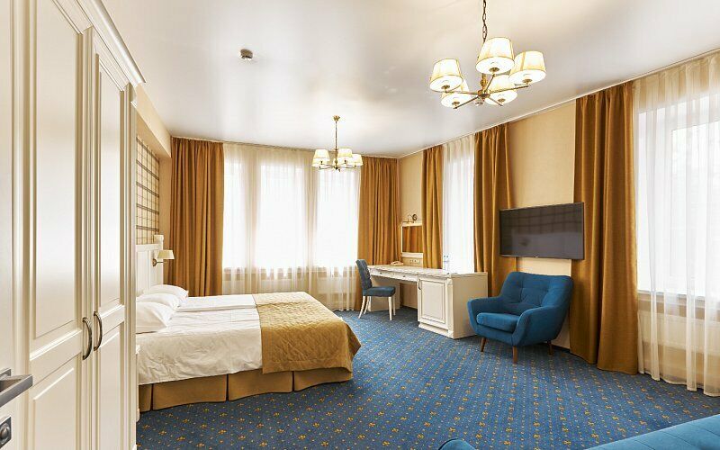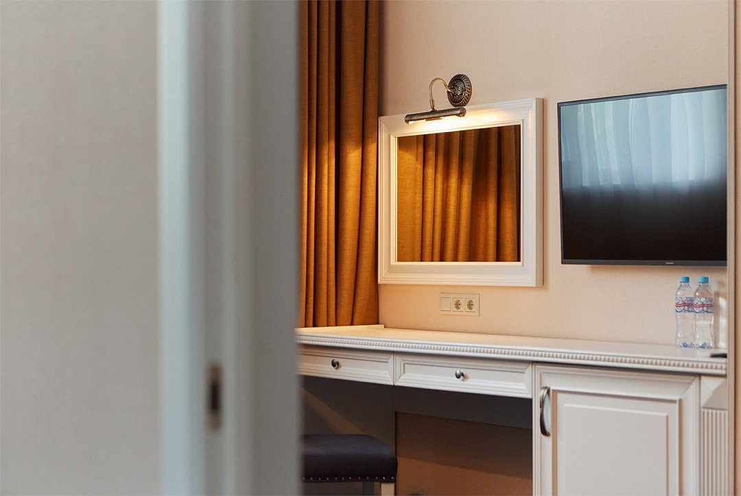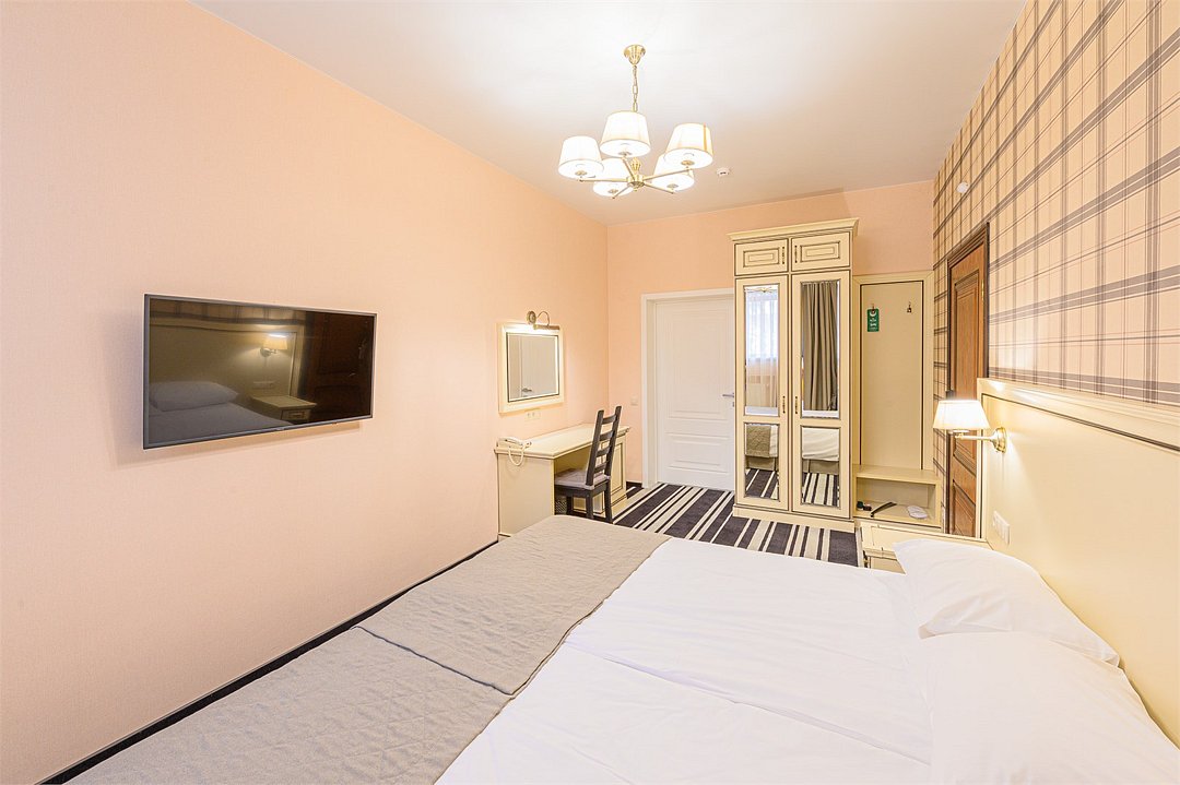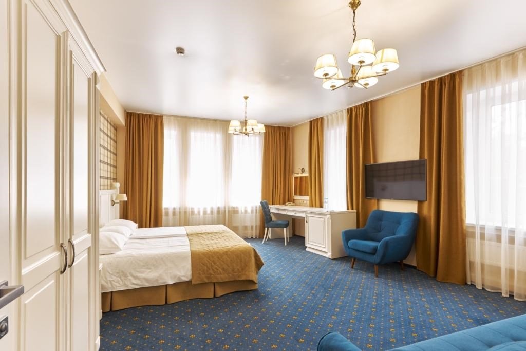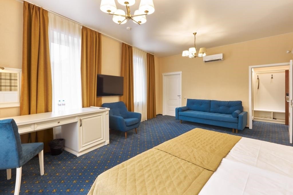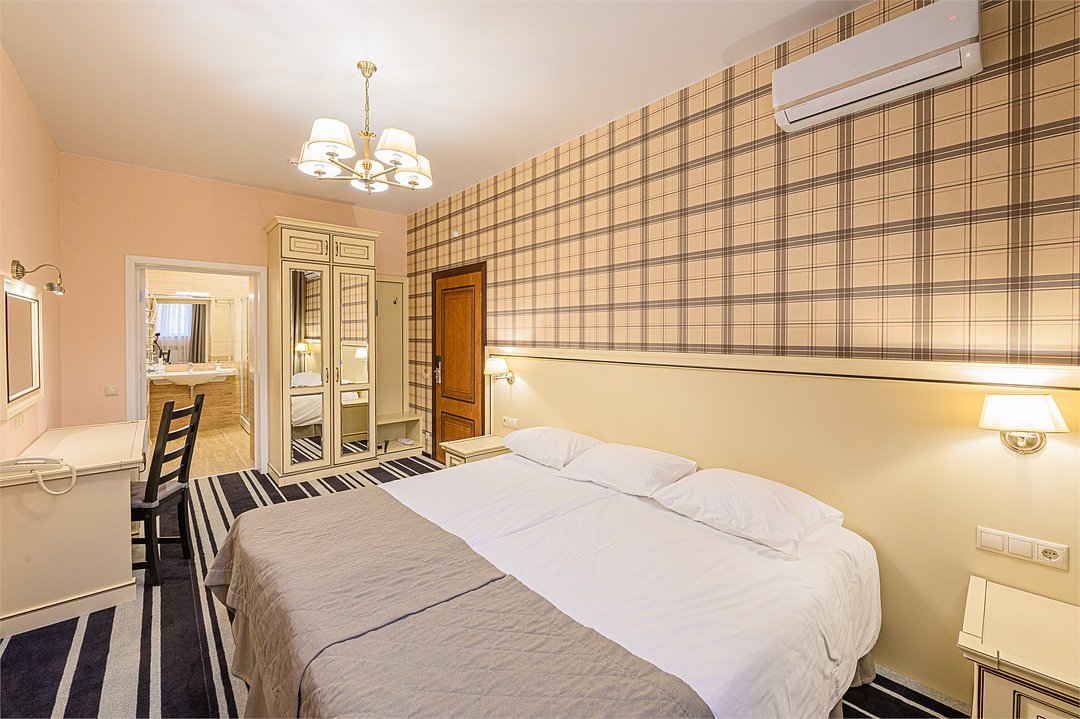 интерактивное телевидение, Wi-Fi, IP-телефон, две телефонные линии, кондиционер, светильник, настольные лампы, фен, система безопасности, электронные замки, утюг, ванная комната, душевая кабина, биде, банные принадлежности, халаты, банные полотенца, тапочки, две односпальные или большая двуспальная кровать, гладильная доска, тумбы, стулья, шкаф для одежды, вешалки, письменный стол, багажная тумба, зеркало, комод, эксклюзивная мебель, звуконепроницаемые стены и окна, обслуживание номеров, сейф, унитаз, раковина, косметическое зеркало, питьевая вода, гостиная зона, ковровое покрытие, отопление, душ, кресло, вид во двор, высокие потолки, туалетные средства, сплит-система, панорамные окна, цифровое тв, диван-кровать, раскладной диван, телевизор с плоским экраном, мини-холодильник, москитная сетка, телевизор со Smart TV, номер для некурящих, можно с питомцамиВ номере