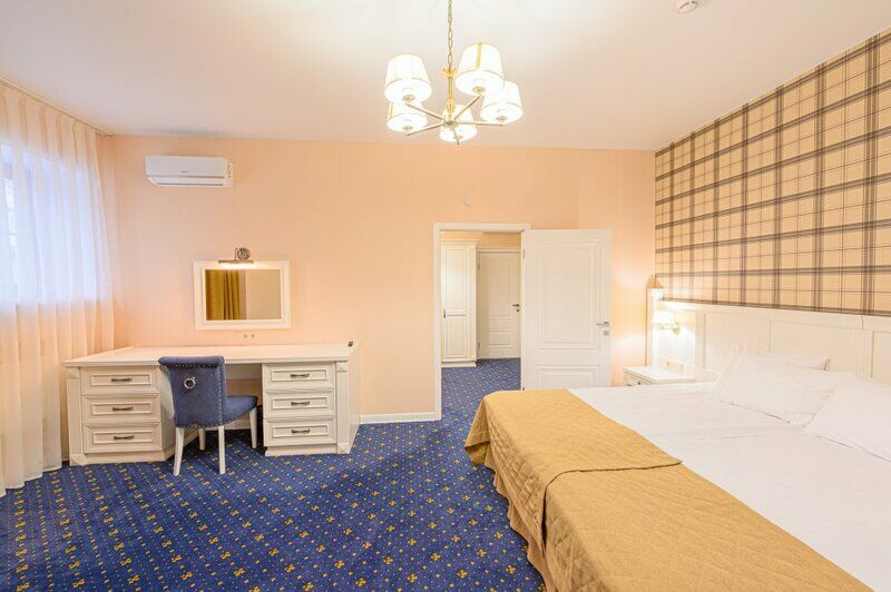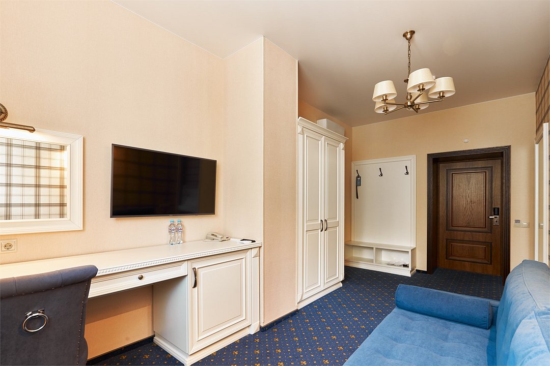 два телевизора, интерактивное телевидение, Wi-Fi, IP-телефон, две телефонные линии, кондиционер, светильник, настольные лампы, фен, система безопасности, электронные замки, утюг, ванная комната, душевая кабина, банные принадлежности, халаты, банные полотенца, тапочки, две односпальные или большая двуспальная кровать, гладильная доска, диван, тумбы, стулья, шкаф для одежды, вешалки, письменный стол, багажная тумба, зеркало, комод, эксклюзивная мебель, две комнаты, звуконепроницаемые стены и окна, обслуживание номеров, сейф, унитаз, раковина, косметическое зеркало, питьевая вода, гостиная зона, ковровое покрытие, отопление, душ, вид во двор, высокие потолки, туалетные средства, сплит-система, панорамные окна, цифровое тв, телевизор с плоским экраном, мини-холодильник, москитная сетка, телевизор со Smart TV, номер для некурящих, можно с питомцамиВ номере
