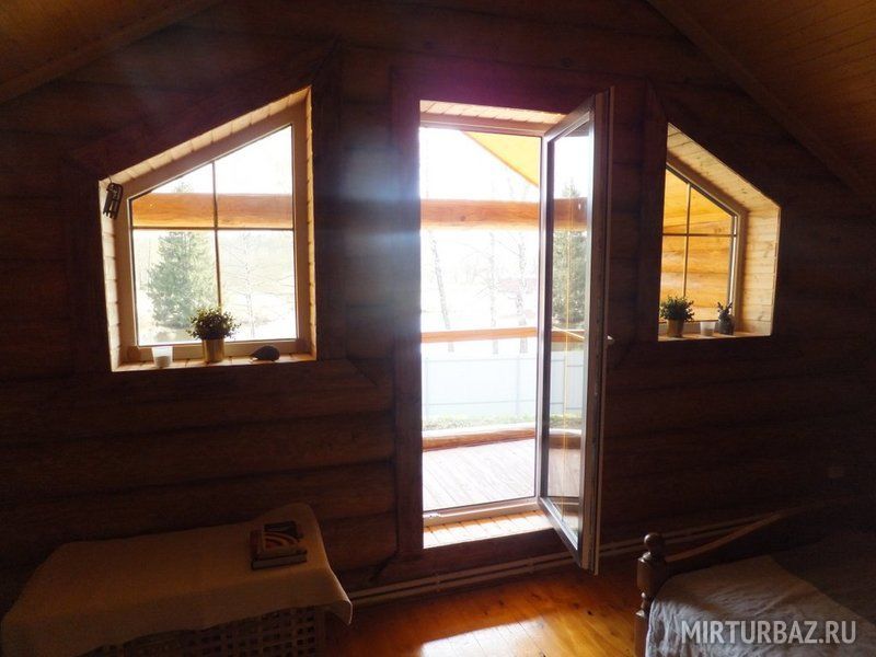 На втором этаже или, как его еще называют «Финской антресоли», расположены второй сан-узел и три спальни с 2 двуспальными кроватями с прикроватными тумбочками и ночным светом. В одной из спален есть выход на балкон с прекрасным видом на озеро, столиком и стульями.
