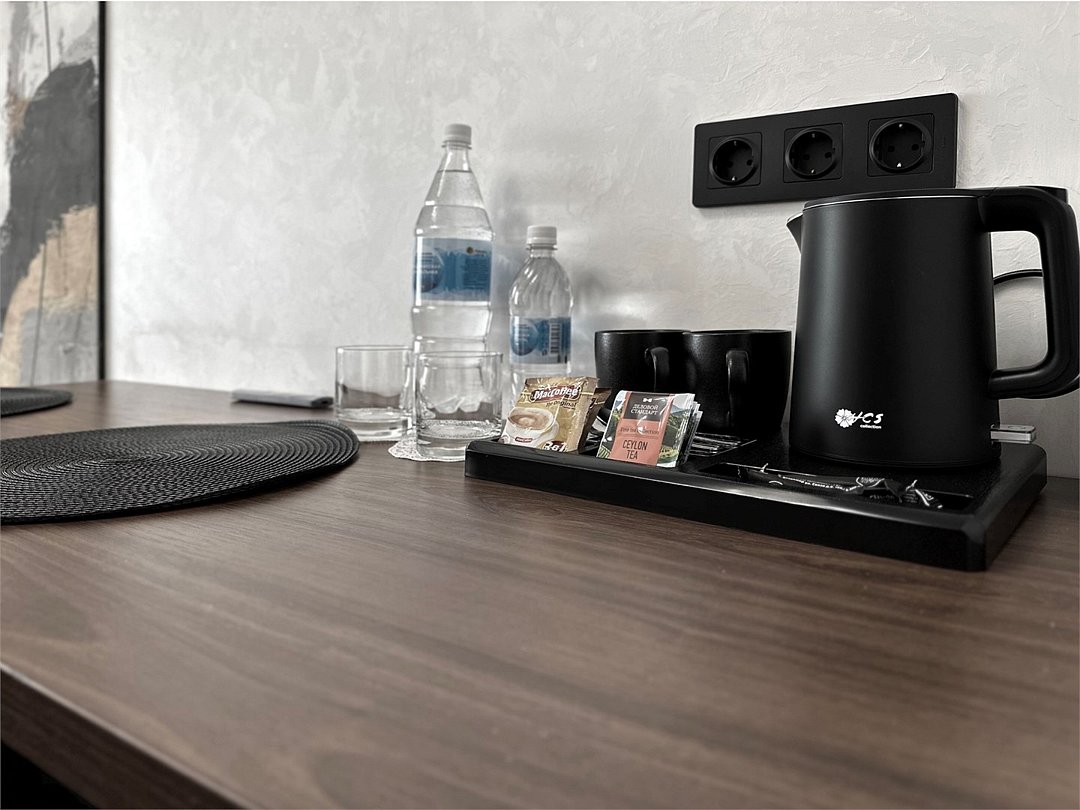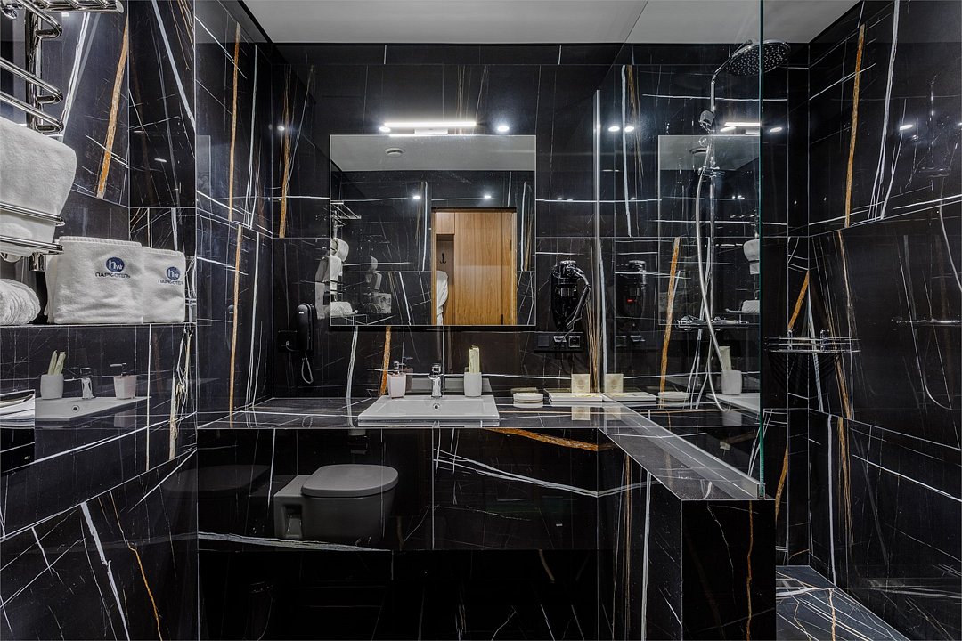 интерактивное телевидение, Wi-Fi, интернет, телефон, кондиционер, светильник, фен, система безопасности, электронные замки, утюг, ванная комната, душевая кабина, халаты, банные полотенца, тапочки, гигиенические средства, кровать «King size», гладильная доска, шкаф для одежды, письменный стол, багажная тумба, звуконепроницаемые стены и окна, чайный набор, обслуживание номеров, информационная карта, меню, сейф, чайник, унитаз, раковина, питьевая вода, отопление, вид на город, плиточное покрытие, высокие потолки, стаканы, стул, стол, туалетные средства, сплит-система, цифровое тв, раскладное кресло, внутренний телефон, телевизор с плоским экраном, мини-холодильник, москитная сетка, шкаф-купе, телевизор со Smart TV, номер для некурящих, кресло-кровать, уборка номера, набор для приготовления чая и кофе, туалетные принадлежности премиум-класса, вешалки-плечики, бутилированная вода, шапочка для душа, затемняющая штора, зеркало в полный рост, воздухоочиститель, онлайн-регистрация, дождевой и ручной душ, тропический душ, Android TVВ номере