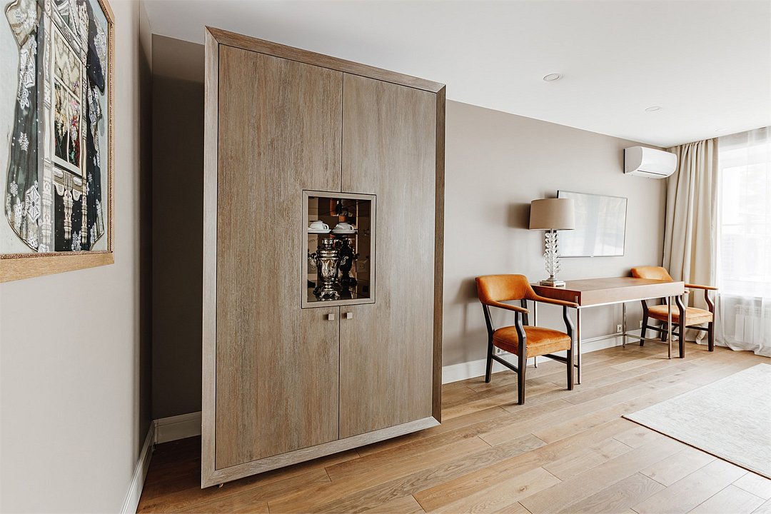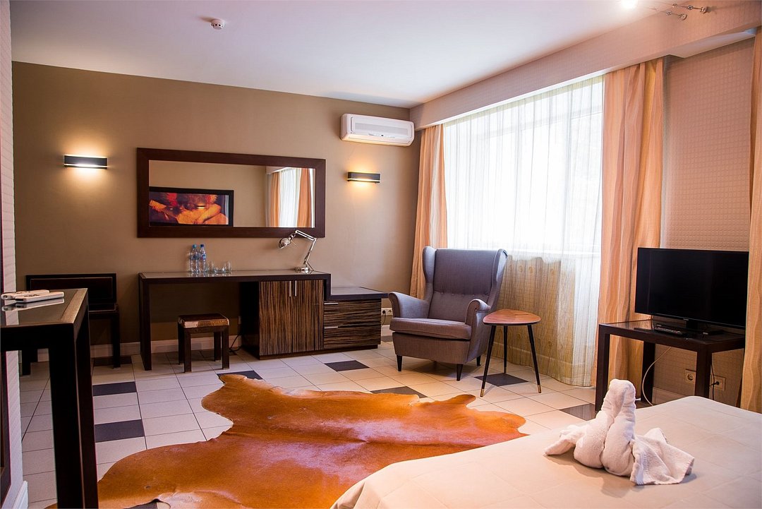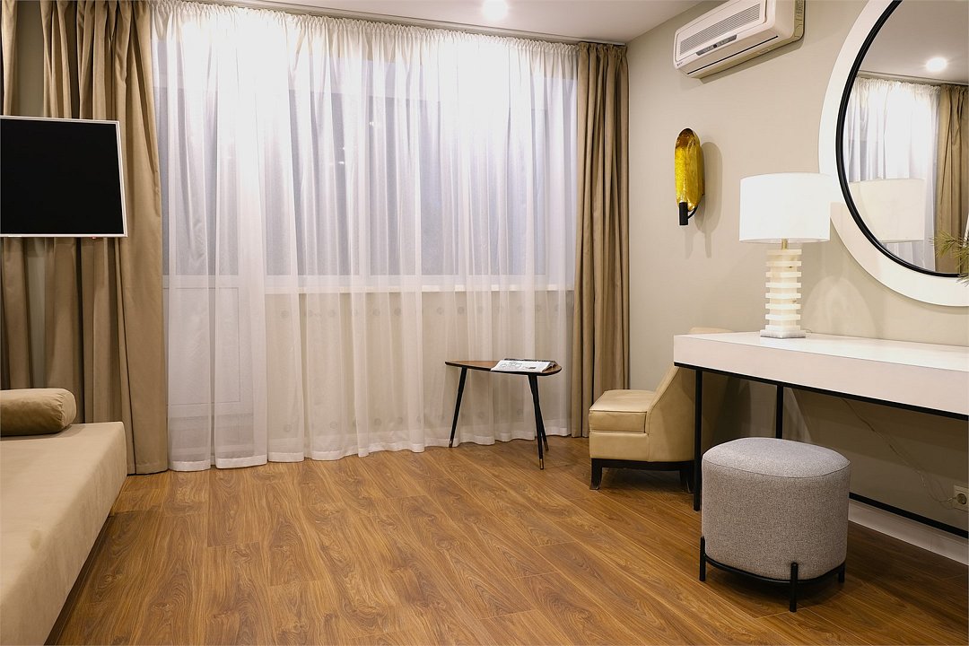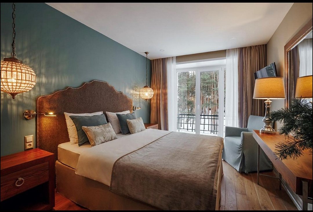 Wi-Fi, интернет, телефон, холодильник, кондиционер, светильник, настольные лампы, фен, ванная комната, ванна, санузел, тапочки, балкон, кровать «King size», односпальная кровать, шкаф для одежды, вешалки, журнальный столик, зеркало, эксклюзивная мебель, чайный набор, чайник, питьевая вода, отопление, кресло, ламинат, стаканы, стул, стол, туалет, цифровое тв, телевизор с плоским экраном, мини-холодильник, телевизор со Smart TV, номер для некурящих, вид на лес, пуфик, холодильный шкаф, уборка номера, бутилированная водаВ гостиничном номере