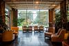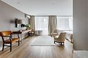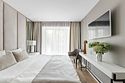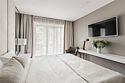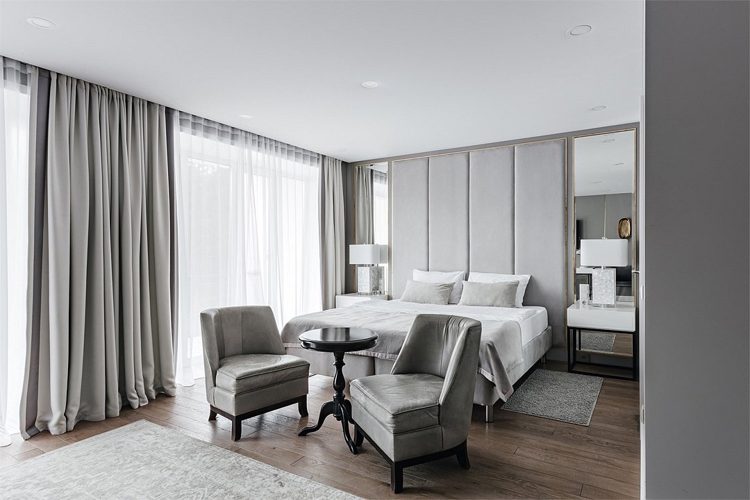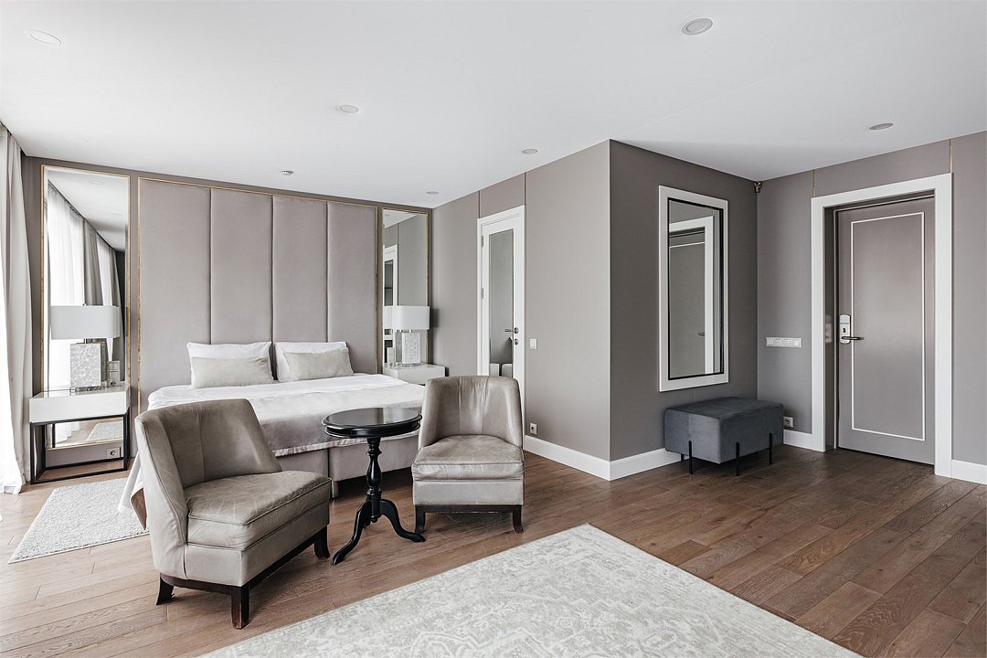 спутниковое телевидение, Wi-Fi, кондиционер, светильник, настольные лампы, фен, ванная комната, ванна, банные полотенца, тапочки, гигиенические средства, косметические средства, балкон с красивым видом, двуспальная кровать, тумбы, шкаф для одежды, вешалки, зеркало, обслуживание номеров, унитаз, раковина, питьевая вода, отопление, вид на сад, кресло, паркет, стаканы, стол, туалетные средства, панорамные окна, телевизор с плоским экраном, мини-холодильник, номер для некурящих, пуфикВ гостиничном номере