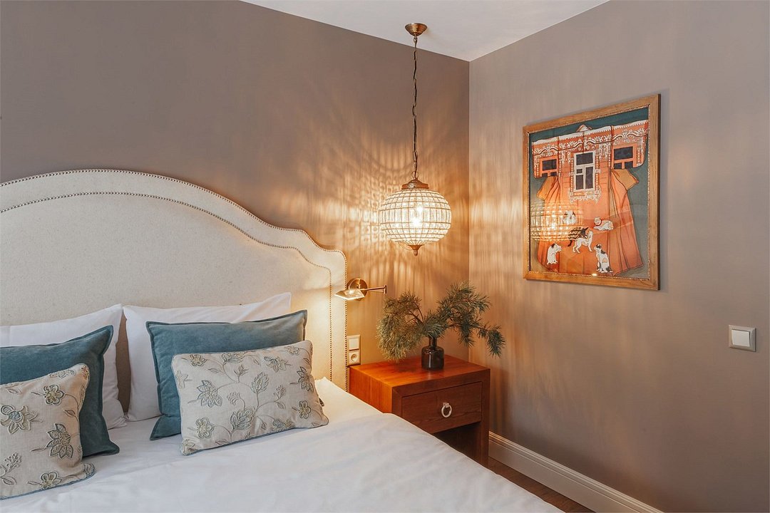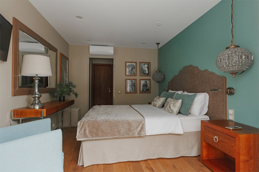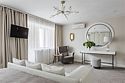 кабельное телевидение, Wi-Fi, светильник, настольные лампы, фен, вентилятор, санузел, банные полотенца, тапочки, гигиенические средства, косметические средства, балкон с красивым видом, кровать «King size», тумбы, стулья, вешалки, обеденный стол, зеркало, две комнаты, чайный набор, обслуживание номеров, информационная карта, меню, чайник, питьевая вода, обеденная зона, душ, вид на сад, кулер на этаже, раздельный санузел, стаканы, туалетный столик, туалетный столик, телевизор с плоским экраномВ гостиничном номере