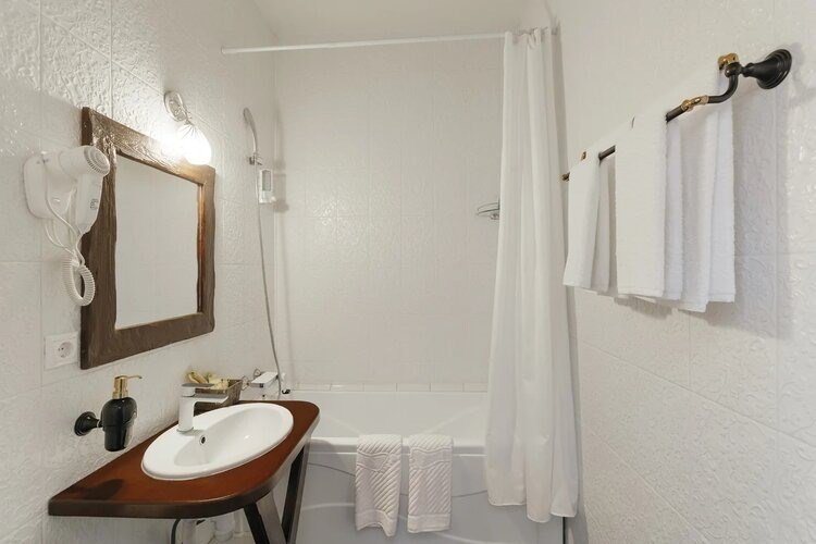 кабельное телевидение, Wi-Fi, интернет, телефон, кондиционер, светильник, фен, система безопасности, электронные замки, обогреватель, ванна или душевая кабина, санузел, халаты, банные полотенца, тапочки, гигиенические средства, косметические средства, двуспальная кровать, тумбы, шкаф для одежды, вешалки, зеркало, звуконепроницаемые стены и окна, чайный набор, набор посуды, обслуживание номеров, информационная карта, меню, сейф, минеральная вода, унитаз, раковина, питьевая вода, ковровое покрытие, отопление, кулер на этаже, плиточное покрытие, высокие потолки, стаканы, столовые приборы, туалетный столик, тумба, туалетный столик, туалетные средства, телевизор с плоским экраном, мини-холодильник, мансардные окна, номер для некурящих, пуфикВ гостиничном номере