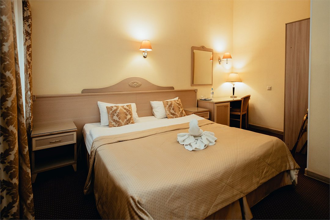 2 взрослых на основном местеБез питанияЛучшая цена дня без завтракаПодробнееС стоимость тарифа входит: проживание в номере выбранной категории, охраняемая парковка, wi-fi на всей территории, услуга вызова такси, бутылка воды комплиментарно, чай и зерновой кофе круглосуточно бесплатно, услуга "будильник" и обслуживание номера.