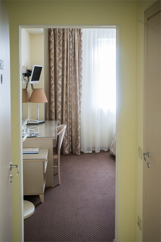 Приятные открытия сопровождают повсюду: лебеди из полотенец создали хорошее настроение, хорошо подогнанные ручки дверей не дают им хлопать, замки устроены так, что можно не боятся забыть ключ в номере и потом не попасть, в ванной под раковиной обнаруживается душ для интимной гигиены, там же и в курилке освежители воздуха, в шкафу аж две ложки для обуви разных размеров и одёжная щётка, плечики деревянные удобные и их достаточное количество, в ванной есть крючки для халатов, вешалки для полотенец и большой полотенцесушитель, окно открывается так, что воздух дует в противоположную от кровати сторону, телевизор подвешен так, что его удобно смотреть с любого места кровати...много таких вещей и деталей, которые не сразу бросаются в глаза, но делают ваше пребывание здесь очень комфортным.