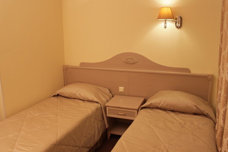 Отмечу отличную кровать кингсайз с ортопедическими матрасами и отличное тиковое постельное бельё.