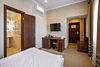 Wi-Fi, кондиционер, фен, электронные замки, утюг, ванна или душевая кабина, теплый пол, банные полотенца, косметические средства, двуспальная кровать, гладильная доска, тумбы, стулья, шкаф для одежды, письменный стол, багажная тумба, звуконепроницаемые стены и окна, обслуживание номеров, минеральная вода, питьевая вода, отопление, кулер на этаже, вид во двор, стаканы, внутренний телефон, москитная сетка, телевизор со Smart TV, теплые полы, номер для некурящих, usb порт, пуфик, гигиенический душ, чайная станция, экологичный подход, уборка номера, набор для приготовления чая и кофе, вешалки-плечики, бутилированная вода, затемняющая штора, зеркало в полный ростВ гостиничном номере