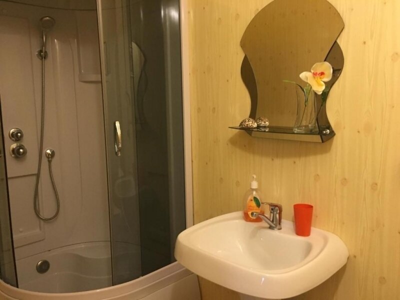 В номере: две спальни и кухня. В спальнях: две двуспальные кровати, прикроватные тумбочки, телевизор, цифровое телевидение. В кухне: диван, кухонный гарнитур, стиральная машинка, газовая плита, набор посуды, микроволновая печь, электрический чайник. В ванной: душ, туалет, раковина.