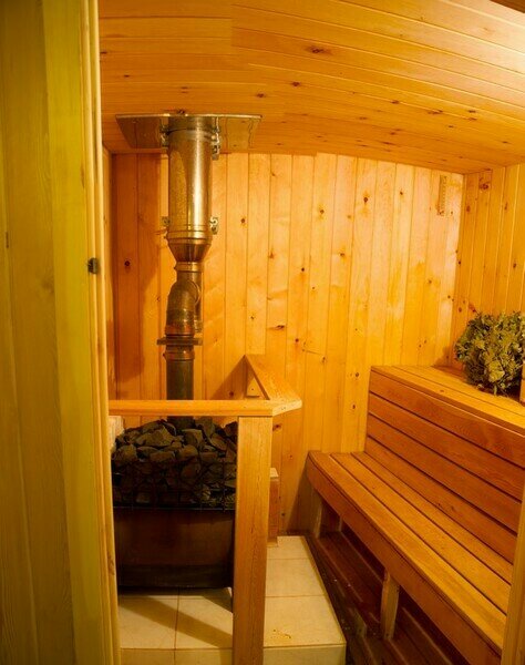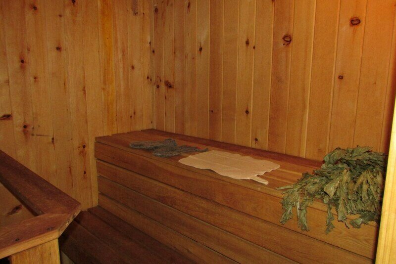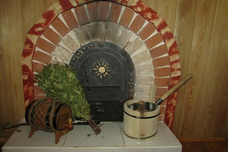Баня полностью выполнена из лиственницы, парилка сделана из кедра, дух русской бани поддерживает печь на дровах.