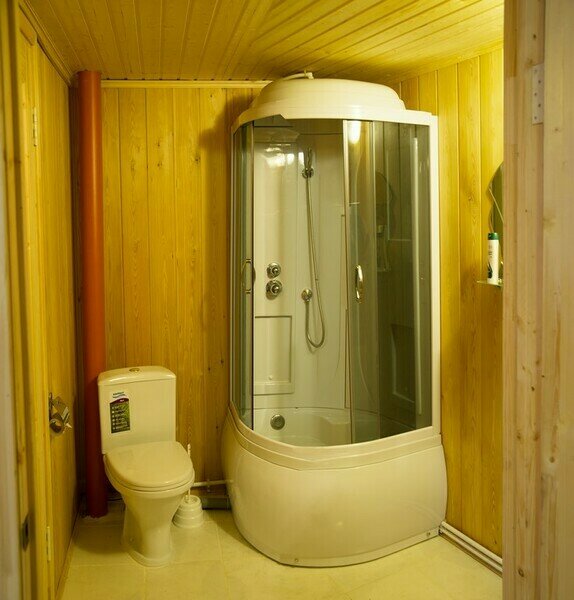 В номере: три спальни, три туалетных комнаты, кухня. В каждой спальне: двуспальная кровать (или две односпальные кровати), прикроватные тумбочки, шкаф, телевизор, Wi-Fi. В кухне: диван, стол, газовая плита, микроволновая печь, холодильник, электрический чайник, набор посуды. В доме 3 туалетных комнаты в каждой комнате: душевая кабина, раковина, туалет.
