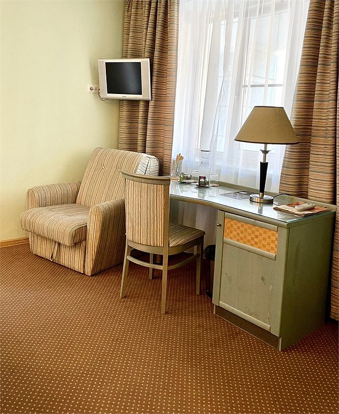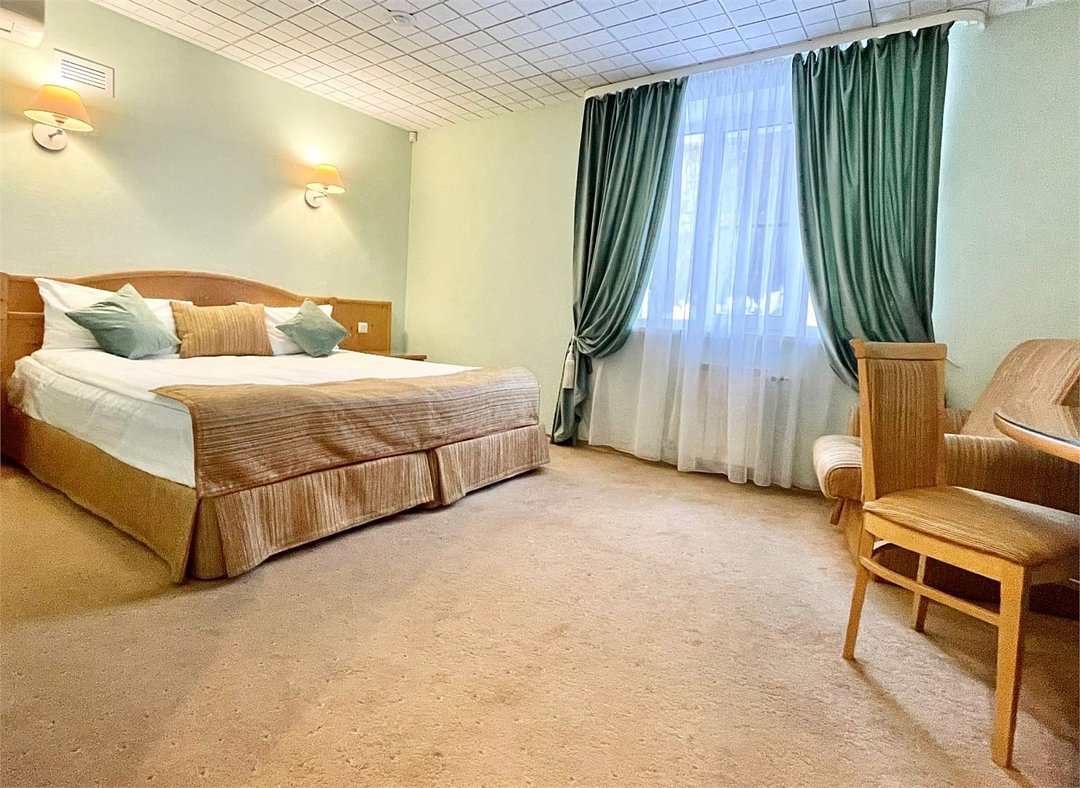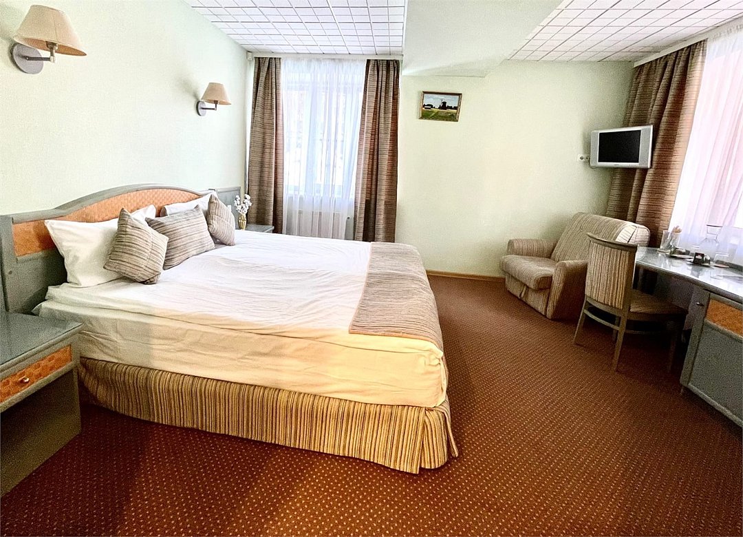 Чистый, небольшой номер. Достойная мебель, белоснежное бельё , много подушек ,всё необходимое в ванной комнате. Приятный бонус👏👏👏👏 , вкусный, сытный ,домашний завтрак.