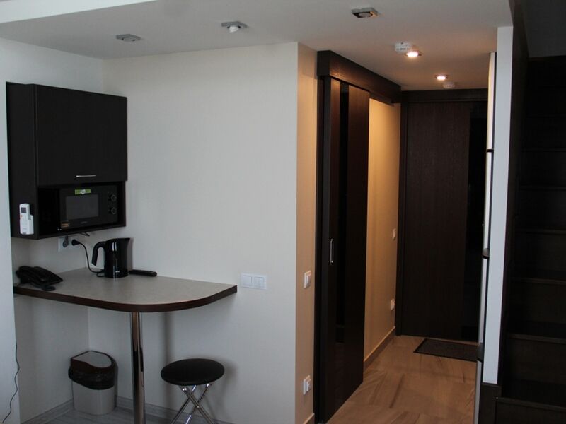 Маленькая уютная гостиница в жилом комплексе таунхаусов (или как назвать?). Машину есть куда поставить, небольшая закрытая парковка под видеонаблюдением. Удобная.