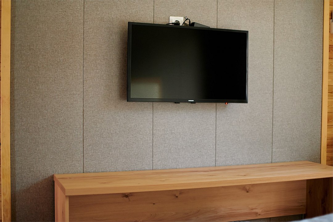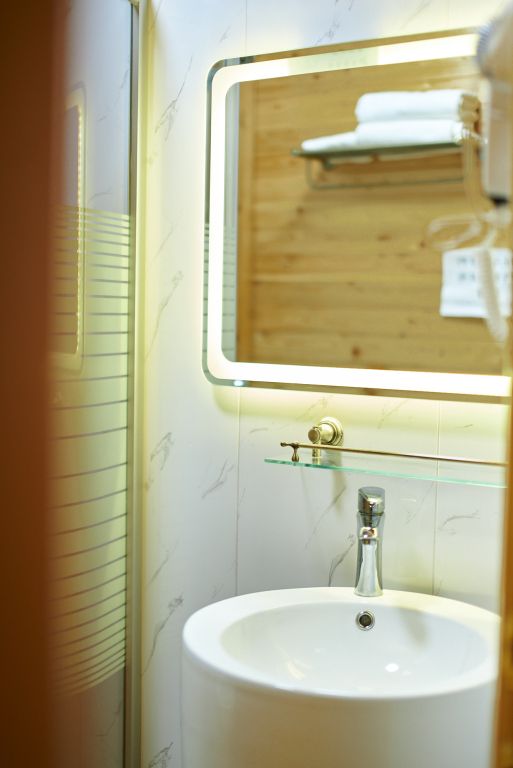 телевизор, Wi-Fi, кондиционер, фен, душевая кабина, банные полотенца, две полутораспальные кровати, тумбы, обеденный стол, зеркало, чайник, раковина, вид во двор, туалет, раскладной диван, мини-холодильник, двуспальный раскладной диван-кроватьВ гостиничном номере