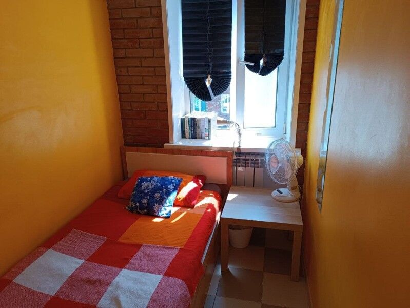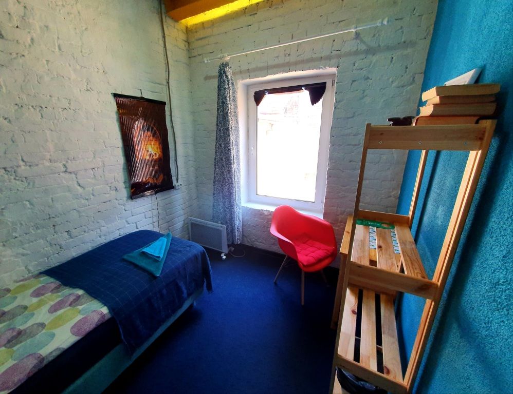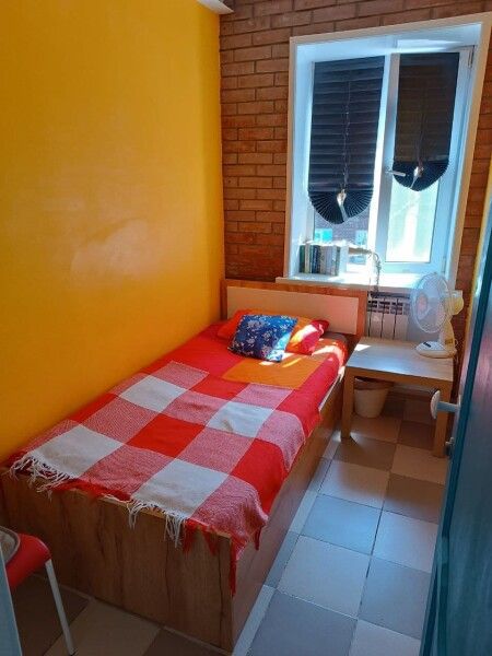Небольшая одноместная комната с односпальной кроватью (кровать размером 190х80 см) и общими удобствами.