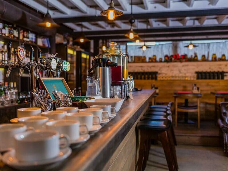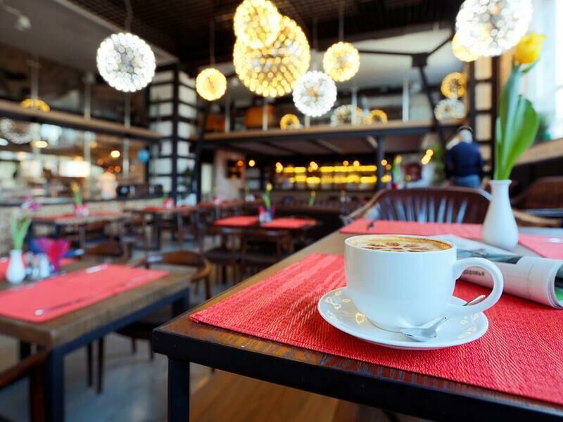Имеет отдельную зону для кофе-брейков, фуршета.