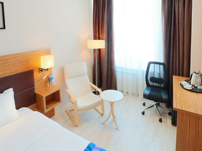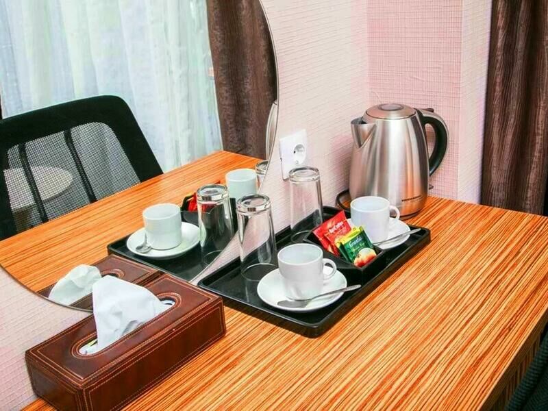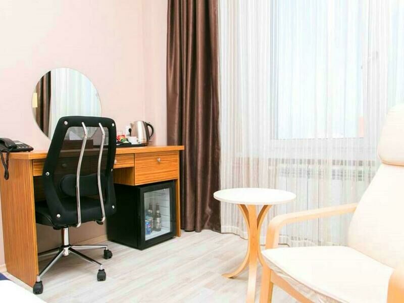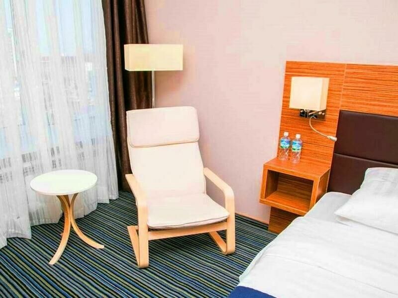 Восьмиэтажное здание отеля, оснащенное лифтом, находится на одной из главных магистралей района — улице Партизанской. Гостей ожидают комфортабельные номера категории Стандарт, Супериор, Люкс. Номера небольшие, но хорошо меблированы, со стильным интерьером. В каждом есть собственный санузел с душевой или ванной, бытовая техника — телевизор, кондиционер, электрочайник, доступен беспроводной интернет.
