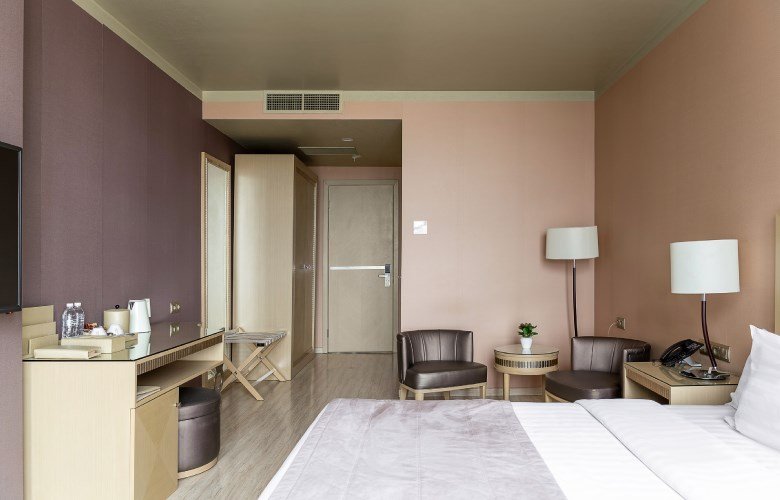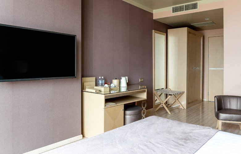 В номере в вашем распоряжении: телевизор для отдыха и развлечений, wi-fi, чтобы всегда оставаться на связи с внешним миром, холодильник для хранения напитков и легких закусок, система кондиционирования для поддержания приятного микроклимата, чайная зона, где вы всегда сможете насладиться чашечкой ароматного чая или кофе. Ванная оснащена душевой кабиной с гигиеническим душем, предоставляется утюг и гладильная доска, а сейф обеспечивает безопасное хранение ценных вещей, придавая вашему пребыванию дополнительный уровень уверенности.Услуги и удобства