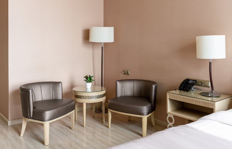 Интерьер с первых минут пребывания погружает в атмосферу комфорта, а две односпальные кровати с ортопедическими матрасами обеспечивают отличные условия для приятного отдыха и сна. Номер оснащен душевой кабиной с современными удобствами и средствами личной гигиены, системой кондиционирования, телевизором, холодильником, гладильной доской с утюгом – все это делает его отличным выбором для командировок или увлекательных путешествий.Услуги и удобства