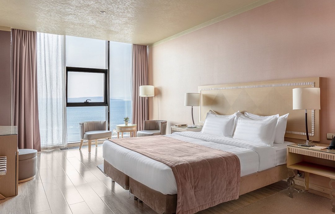 Непревзойденные виды: Каждый номер оборудован панорамными окнами, открывающими потрясающие виды на море или яркие огни города. Пусть ваш отдых дополнит вдохновляющий пейзаж из вашего окна.