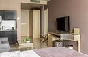 Просторный номер с панорамными окнами, из которых открывается умиротворяющий вид на море – место, где уют встречается с умиротворением и комфортом. Большая двуспальная кровать с ортопедическим матрасом гарантирует спокойный и восстанавливающий силы отдых. Панорамные окна приглашают насладиться мягким светом заката и бескрайними видами моря, добавляя пребыванию особое очарование. Благодаря обустроенной кухонной зоне в любой момент можно организовать легкий перекус, не выходя за пределы номера. Ванная комната оснащена всем необходимым для заботы о себе. Теплые оттенки в интерьере заполняют пространство спокойствием и гармонией.Услуги и удобства