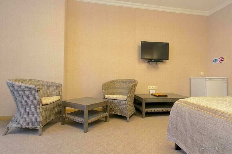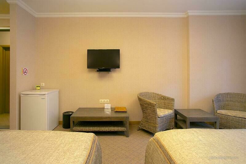 Здесь комфортабельные условия и высокий уровень сервиса. Поселиться можно в номерах гостиницы или коттеджей. Отдыхать вы можете так, как вам хочется: на пляже или у бассейна, прогуливаясь по замечательному тихому парку или посещая спортивные мероприятия. Уютные и комфортные номера на любой вкус, современный фитнес зал, спортивная площадка – создадут вам приятные впечатления.
