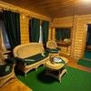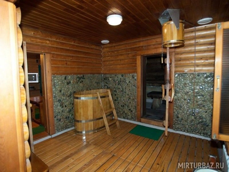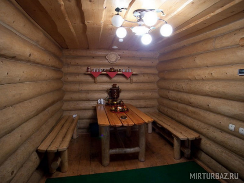 Маленькая баня вмещает до 5 человек. Она обшита классическим липовым бревном и очень хорошо снимает усталость, поднимая настроение и укрепляя здоровье. К вашим услугам кафе и все, что вы только захотите… При желании вы можете воспользоваться расположенным рядом с баней номером с большой и уютной кроваткой, отдельным душем – полноценный гостиничный номер.