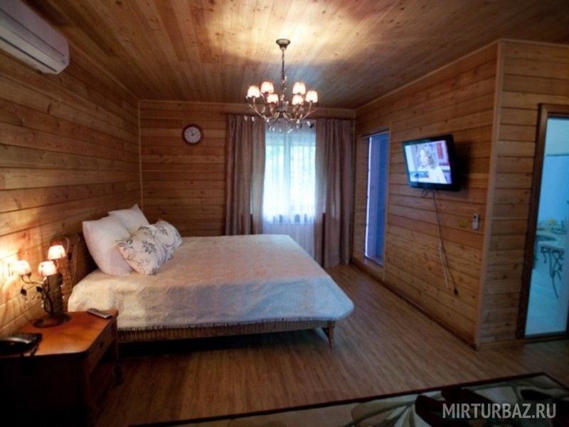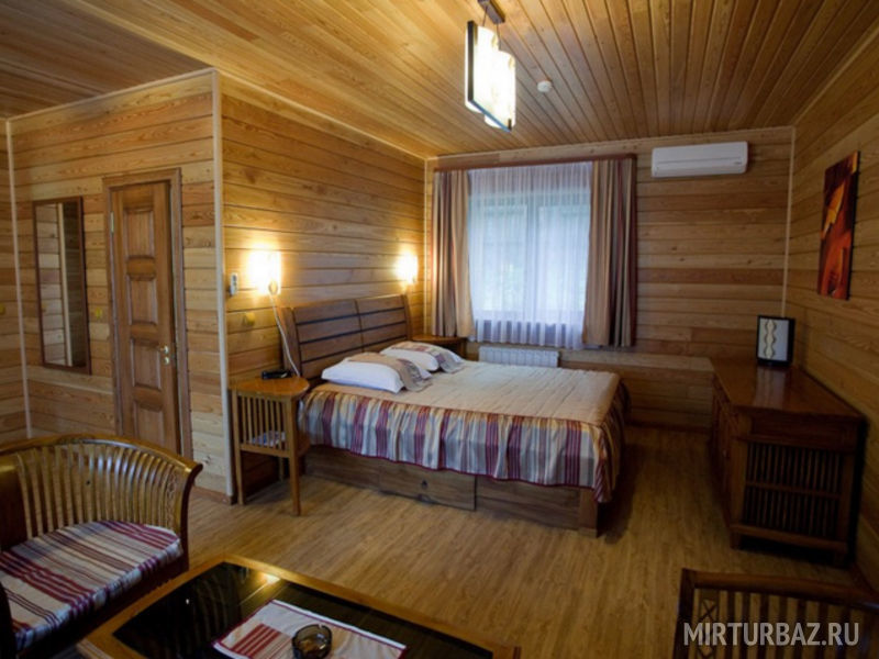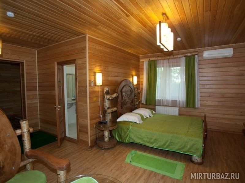 Однокомнатный номер из кедра, с двуспальной кроватью, выполненной вручную из бревна и душевой комнатой. Подходит как для проживания пар, так и для одноместного размещения гостей предпочитающих уют и комфорт. В каждом номере есть: мини-бар, телефон, телевизор (спутниковые, российские каналы), кондиционер.