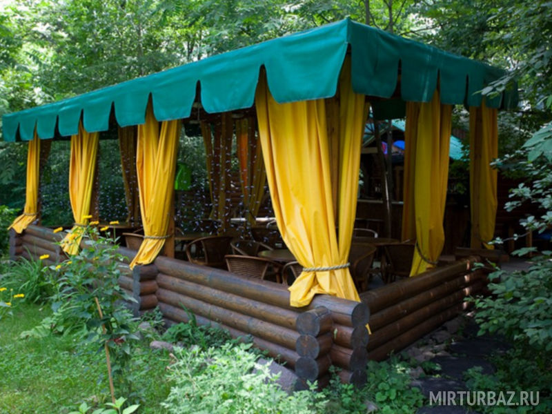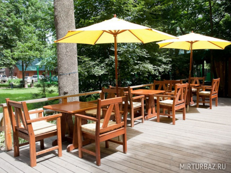 База предлагает террасы на свежем воздухе открытые и под навесом( до 30 человек) - для проведения юбилеев, праздников, детских дней рождений, большая крытая летняя площадка - для проведения торжественных мероприятий, свадеб, корпоративных встреч, банкетов ( до 100 человек) и фуршетов ( до 200 человек).