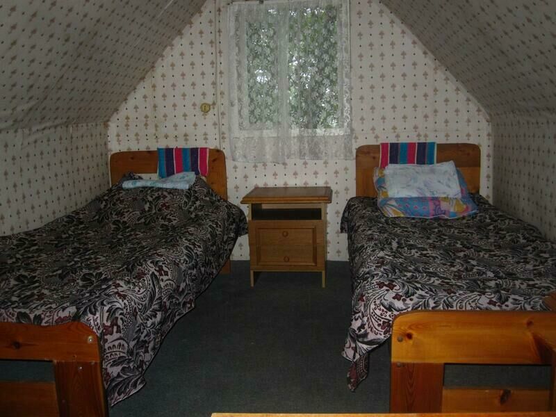 В каждом доме есть односпальные кровати, чайник, холодильник, стол, тумбочки. Удобства на улице.