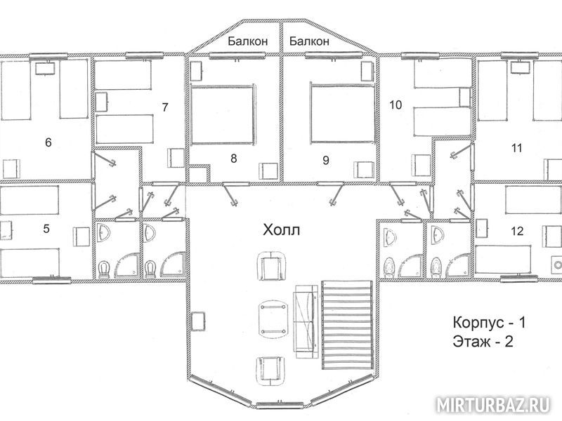 Благоустроенный двухэтажный корпус (для круглогодичного проживания).