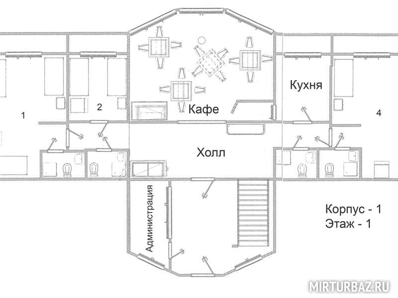 Благоустроенный одноэтажный корпус (для круглогодичного проживания).