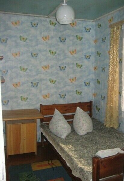 - В каждом домике 3 односпальные кровати, стол, стулья, тумбочки, полочки, зеркала.