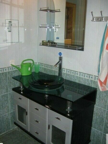 Две односпальные кровати, двуспальный раскладной диван, телевизор, тумбочки, зеркала, стол, стулья, кухонная зона (микроволновая печь, холодильник, плитка, посуда). Душевая кабина (горячая, холодная вода), туалет, раковина