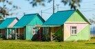 В каждом домике 2 односпальные кровати или двуспальная кровать, стол, стулья. Санузел на улице.