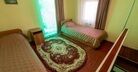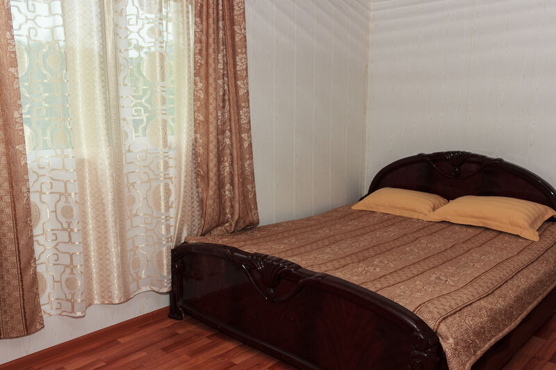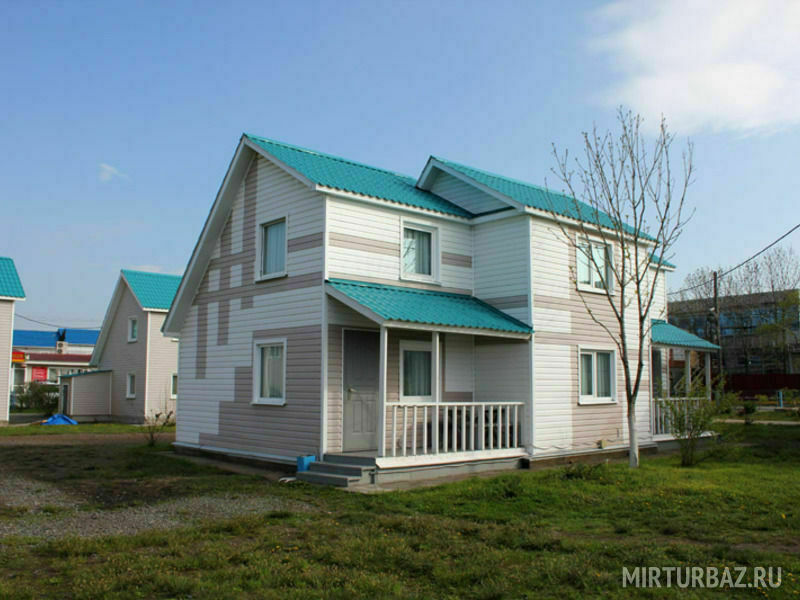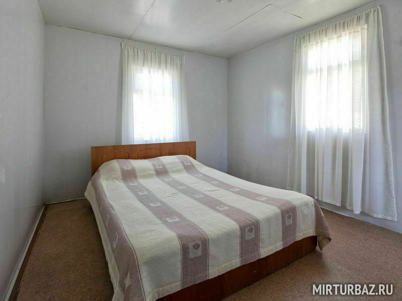 3 односпальные кровати, или 1 односпальная кровать и 2-х спальная, стол, стулья, электричество. Открытая веранда. Предоставляется постельн. белье. С/у рядом с домиком на улице: Душ (платный), умывальники и туалеты размещены в отдельном санитарном блоке.