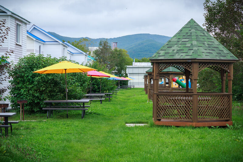 Все домики подключены к электричеству, в комнатах мебель, холодильник (в четырехместных домиках), рядом с домиками туалетная комната, душ (платный) с горячей и холодной водой, душ (бесплатный) с холодной водой.