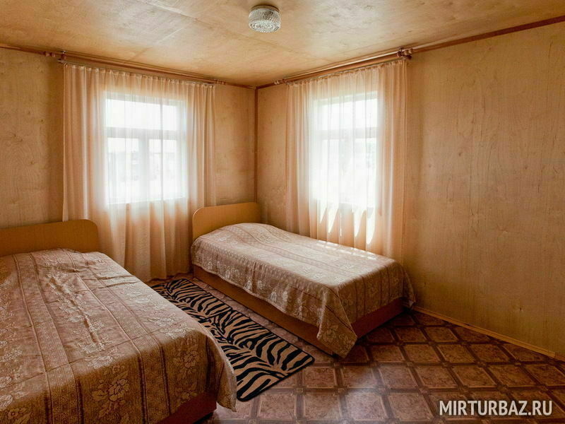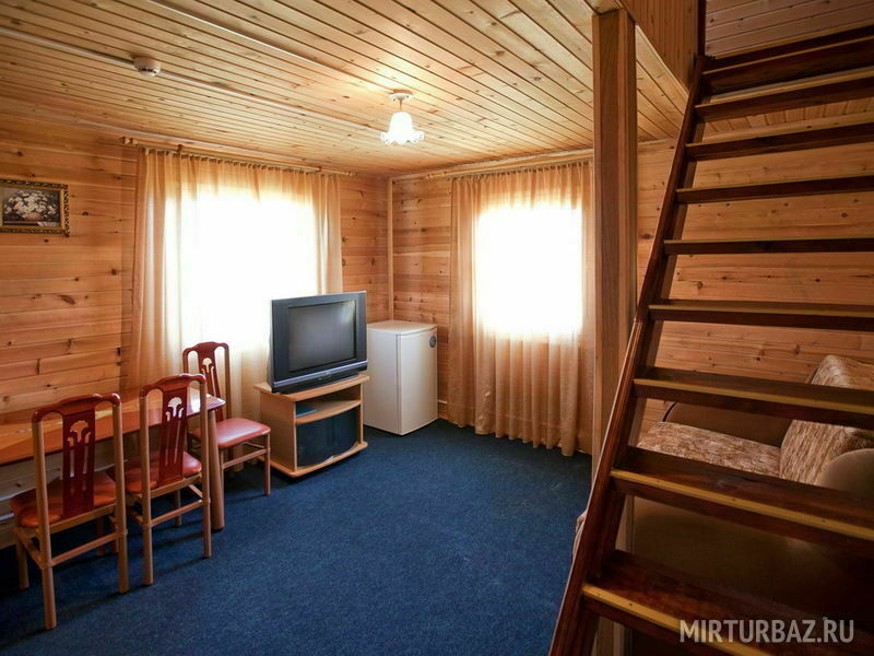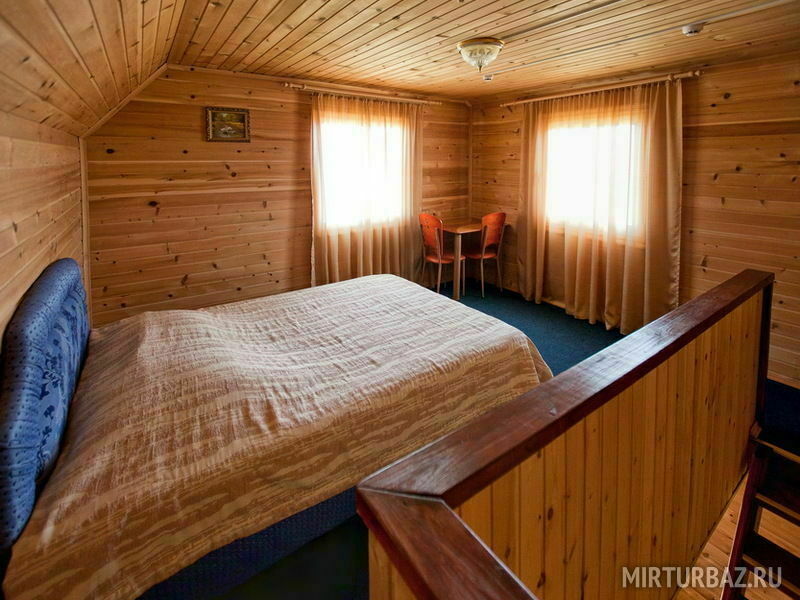 две односпальные кровати или двуспальная кровать, стол, стулья. Открытая веранда со столом и лавочками. Санузел: Душ (платный), умывальники и туалеты размещены в отдельном санитарном блоке.