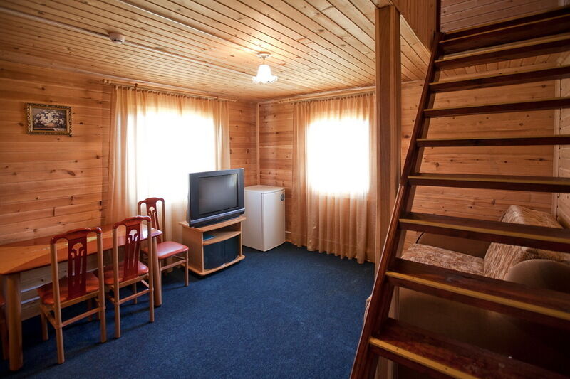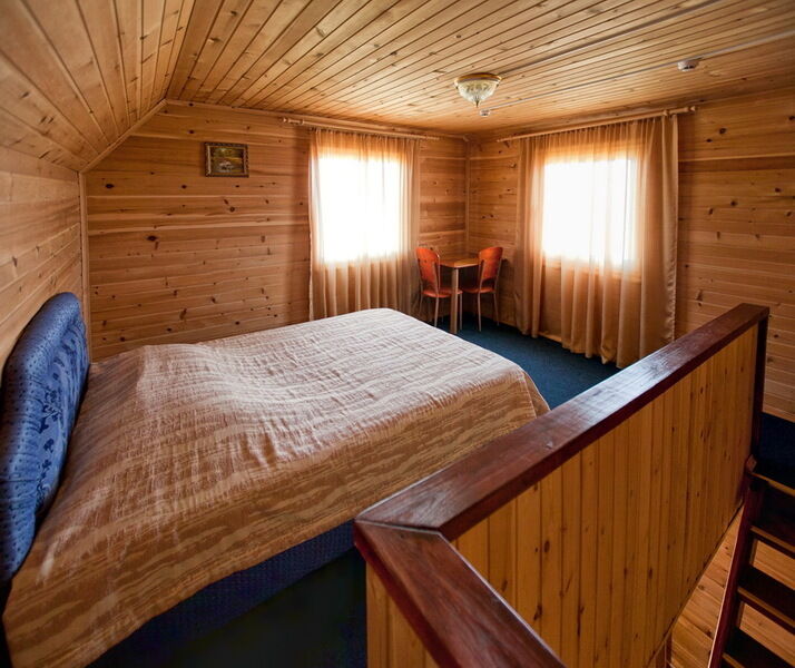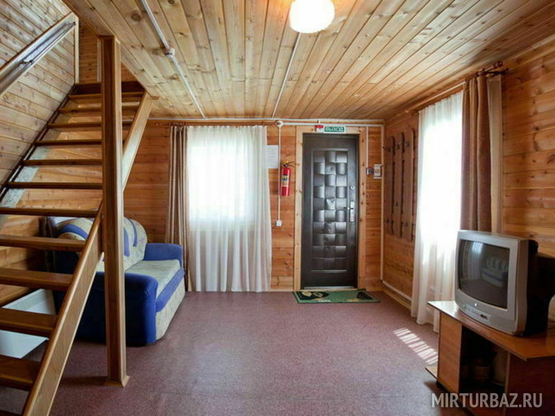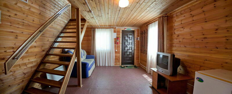 На первом этаже коттеджей диван, мебель, телевизор, холодильник, душ (горячая, холодная вода) и санузел. На втором этаже: две одноместные или одна двуспальная кровать.