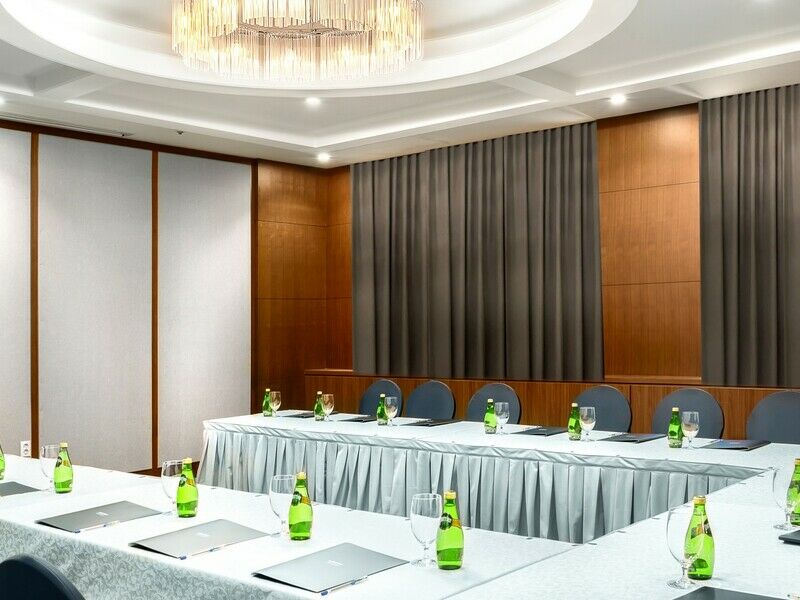 Банкетный зал «Опал» — идеальное место для проведения небольших частных торжеств, бизнес-семинаров, переговоров и других мероприятий. Высокие потолки и роскошные люстры создадут неповторимую атмосферу вашего мероприятия.