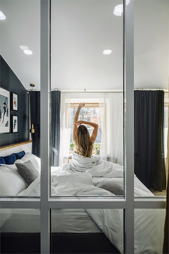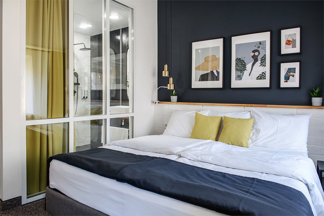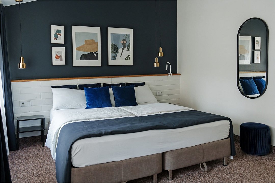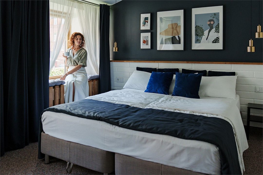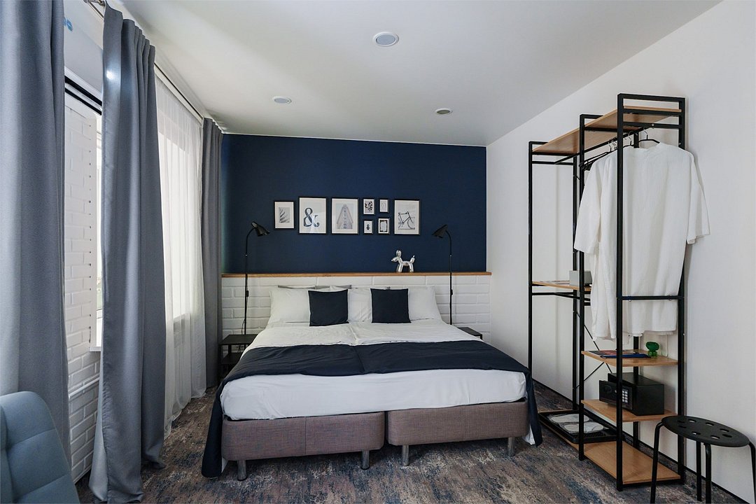 Номер с одной большой кроватью и дополнительным местом для ребенка. В номере два окна, высокие потолки.Услуги и удобства