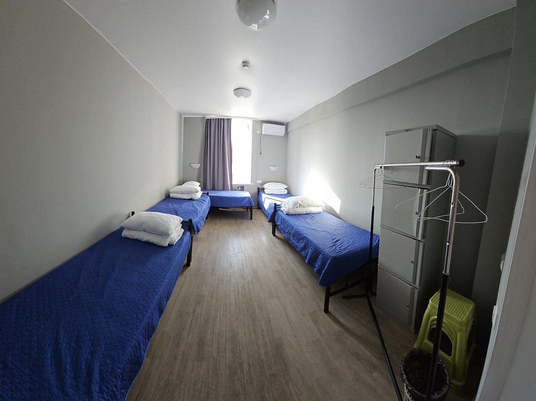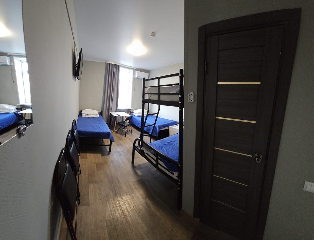 Wi-Fi, кондиционер, фен, утюг, вешалки, зеркало, вид на город, пять односпальных кроватей, стул, стол, санузел на этаже, душ на этаже, услуги прачечной (платно)В месте в номере